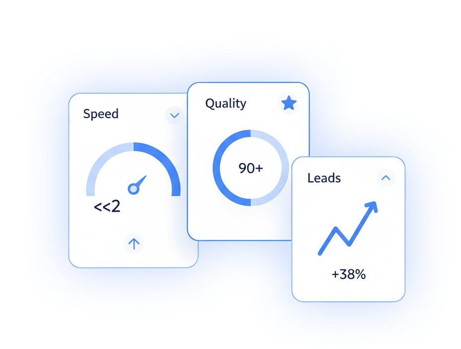 We build fast, affordable, and precise websites—engineered for speed, search, and sales so you win more leads with less spend.